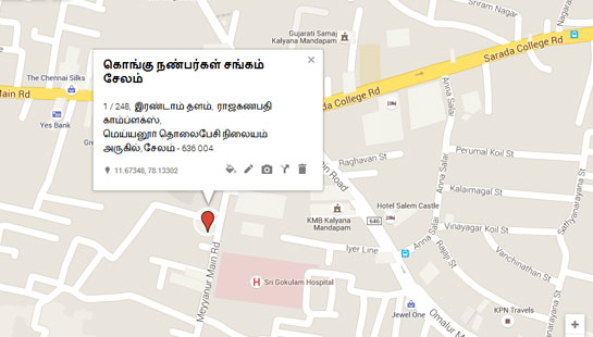 "கொங்கு நண்பர்கள் சங்கம் சேலம் " நமது புதிய அலுவலக திறப்புவிழா. தேதி: 16 - 09 - 2016 நாள்: வெள்ளிக்கிழமை, நேரம்: 6.00AM to 7.00AM இடம்: 22/3, ARS அவென்யூ, சூரமங்கலம் இந்தியன் வங்கி எதிரில், திருவாகவுண்டனுர் ரோடு, சேலம் 636005, கொங்கு நண்பர்கள் அனைவரும் தவறாமல் கலந்துகொள்ளவும். அன்புடன், தலைவர், செயலாளர், பொருளாளர் மற்றும் நிர்வாககுழு KNSSALEM CELL: 9445536363.